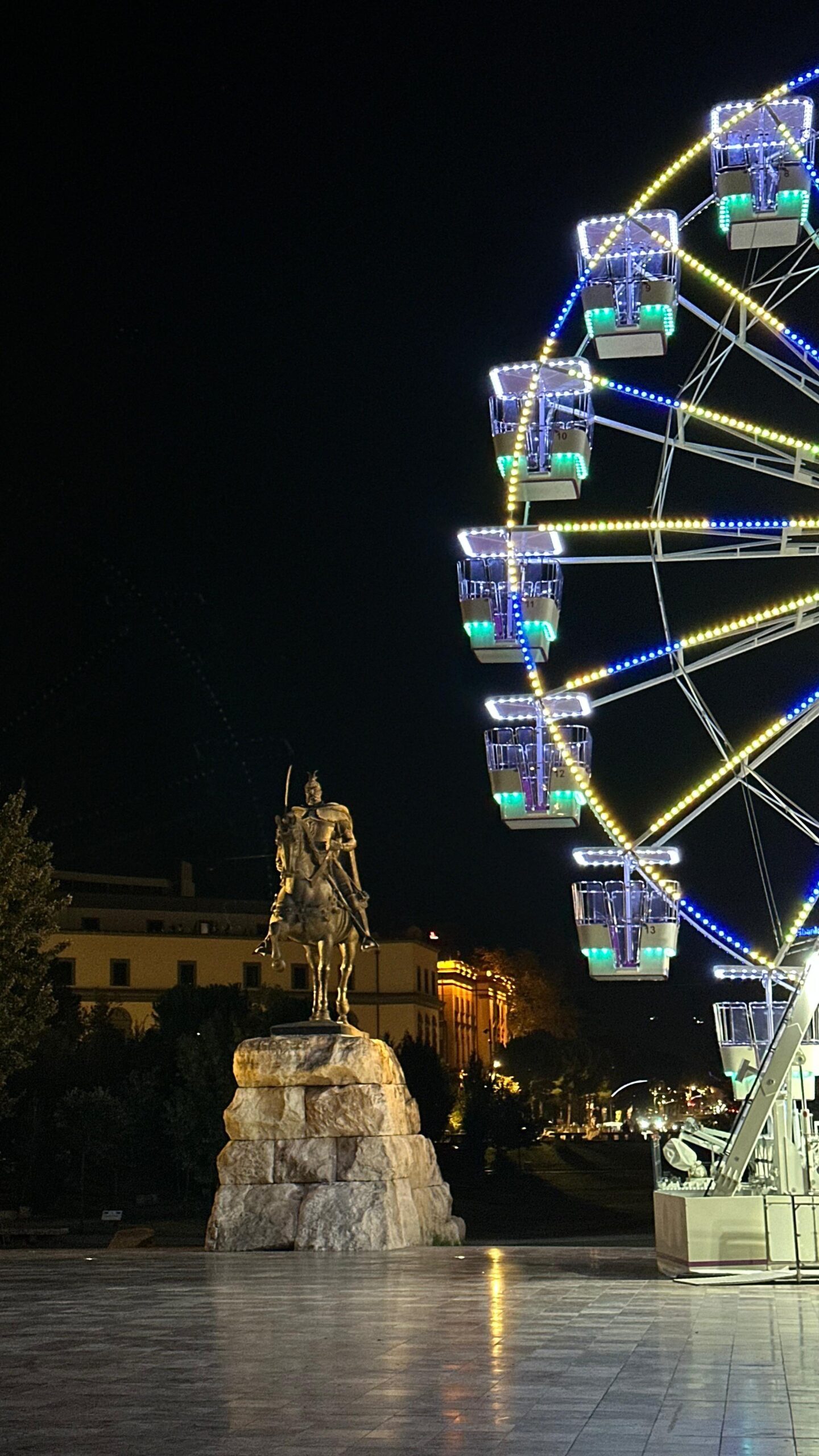 Skanderbeg Square – admire the illuminated architecture and lively city vibe.